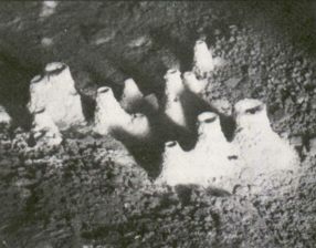 Dr Aspin putting flouresceine & drain testing cartridge in Slit Sink (Early 1950's). This lead to the naming of Green & Smelly Passage. at the bottom of Pool Sink |