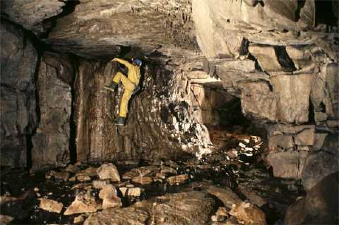 and over a rock slope and down into SHOWERBATH PASSAGE.