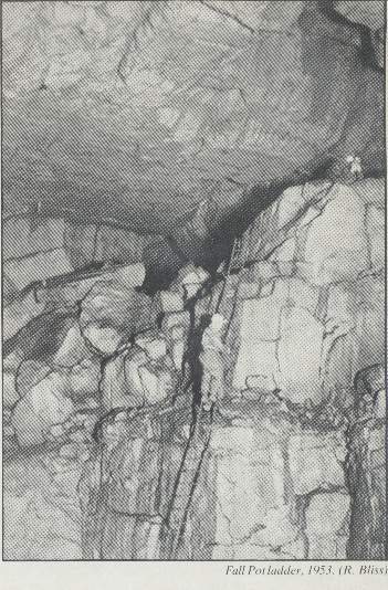 Downstream the passage skirts the boulder pile in Fall Pot, enlarging suddenly into a tall rift.