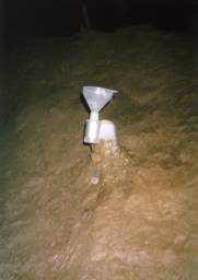 Photograph 4. Drip water collection site in the Graveyard Chamber, Lancaster Hole |