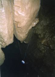 Photograph 5. Data logger recording cave temperature and humidity levels, Graveyard Chamber, Lancaster Hole.