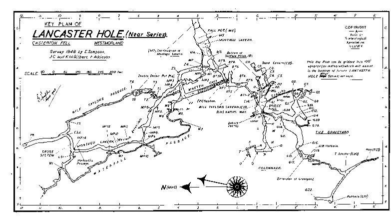 This leads off via an inlet half way along BILL TAYLOR'S on the north side. it is a series of scaled pitches of 12m, 8m 12m and 7m ascending 40 metres to a bedding in a shale band.with a too tight inlet.