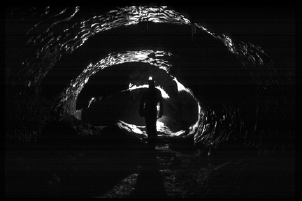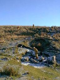 Slightly further down the steep boulder slope mentioned above, and also on the left, is the concealed crawl which leads to THE GRAVEYARD SERIES