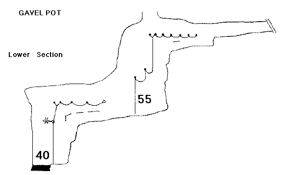 The stream sinks into a bouldery sump just before the climb out into the Gavel Pot shakehole in the final chamber. The water next appears below the dig into the main Gavel extensions. The sump has been dived to -5m depth and is choked.
