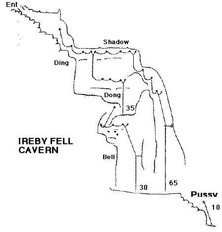Ireby Inlet Sump At the base of the penultimate pitch, a high and narrow rift leads to a sump. This starts as a descent down a 6m deep pot to a 2m diameter tube at the base. A straightforward sump with no real difficulties then gradually ascends to emerge in the Main Downstream Sump pool of Ireby Fell Cavern after 226m. During dry weather this sump has been drained by large scale siphoning operations at the downstream end but no other side passages have been entered.