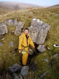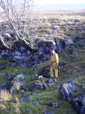 Fissure in gill directly below the entrance to LINK POT Now filled in, if anyone wants some digging tools it is believed that the NPC left some at the bottom!!