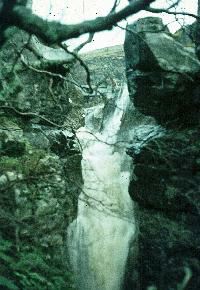 to 30 m high. Much of the rest of the system consists of active vadose streamways draining down dip from Ease Gill Beck, including Top Sink, Boundary Pot, Borehole, Pool Sink and County Pot. Most of these inlets descend about 50 m to reach the main drain and are complicated by captures and re-routings into pre-existing passages. These passages predate Ease Gill Beck itself as they all have upstream continuations on the opposite south bank eg County Caves Photo: The top of the Cow Dub nick point in dry weather with the middle section of Ease Gill beyond. |