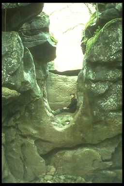 GeologyThe Dinantian Great Scar Limestone is about 200 thick with numerous shale bands up to 2 m thick and dips gently to the north-west. The limestone and hence the caves are limited to the west by the Dent Fault. Here the limestone beds are buckled and faulted against Silurian greywackes to the west in a disturbed zone up to 200 m wide. The development of Bull Pot of the Witches is especially controlled by these features. To the south-west the limestone is cleanly faulted against younger beds but this is obscured by thick layers of glacial drift. The limestone outcrop is broken up by many minor faults and major sets of joints running N-S ad NW-SW. There is also shallow synclines plunging down dip on Casterton and Leck Fells. These have introduced local controls on cave development. The shale beds in the limestone have controlled the level of many of the horizontal passages, while the joints and faults have controlled the location of pitches. Much of the karst surface topography has been obscured by thick layers of glacial till. |