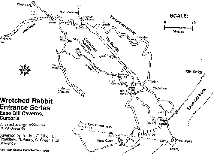 The main passage provides a fairly easy way into the Ease Gill system without the use of tackle but the climbs up the Big Rift are strenuous on the return. The whole Wretched Rabbit Series is far more complex than would first appear from just a casual visit, as can be seen from the account below.