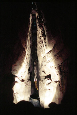 above is a climb up a 4 metre aven to a tight rift. On the right is a